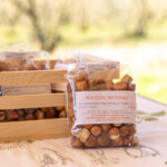La maggior parte della produzione di nocciole dell’azienda di Isabella Caruso vengono conferite in Cooperativa a Caprarola. Loro raccolgono le nocciole e senza nessuna selezione o lavorazione le scaricano. Una parte della produzione però rimane in azienda e con queste nocciole Isabella produce nocciole tostate, nocciole sgusciate, nocciole per la produzione di mostarde e dolci di natale.